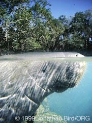 A manatee goes to the surface for a breath of air. |